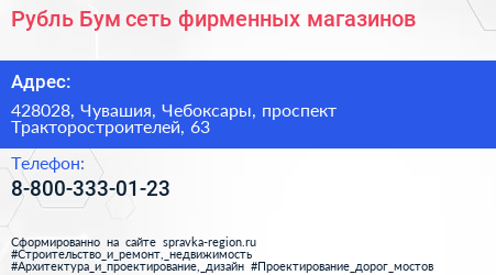 Рубль Бум, сеть фирменных магазинов по адресу 428028, Чувашия, Чебоксары, проспект Тракторостроителей, 63 в дальнейшем Организация, размещена в следующих категориях:
