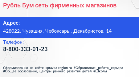Рубль Бум, сеть фирменных магазинов по адресу 428022, Чувашия, Чебоксары, Декабристов, 14 в дальнейшем Организация, размещена в следующих категориях: