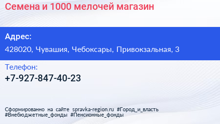Семена и 1000 мелочей, магазин по адресу 428020, Чувашия, Чебоксары, Привокзальная, 3 в дальнейшем Организация, размещена в следующих категориях: