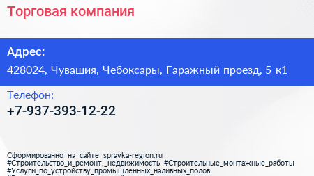Торговая компания по адресу 428024, Чувашия, Чебоксары, Гаражный проезд, 5 к1 в дальнейшем Организация, размещена в следующих категориях: