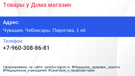 Товары у Дома, магазин по адресу Чувашия, Чебоксары, Пирогова, 1 к6 в дальнейшем Организация, размещена в следующих категориях: