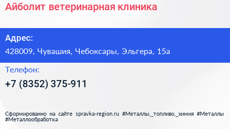 Айболит, ветеринарная клиника по адресу 428009, Чувашия, Чебоксары, Эльгера, 15а в дальнейшем Организация, размещена в следующих категориях: