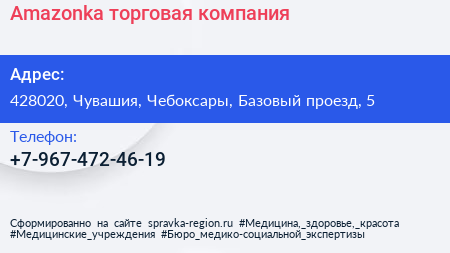 Amazonka, торговая компания по адресу 428020, Чувашия, Чебоксары, Базовый проезд, 5 в дальнейшем Организация, размещена в следующих категориях:
