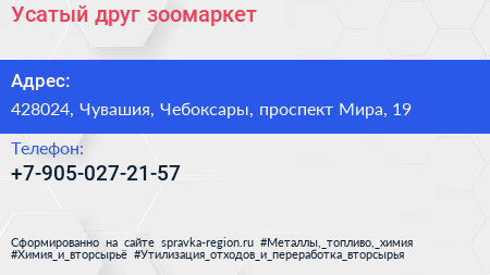 Усатый друг, зоомаркет по адресу 428024, Чувашия, Чебоксары, проспект Мира, 19 в дальнейшем Организация, размещена в следующих категориях: