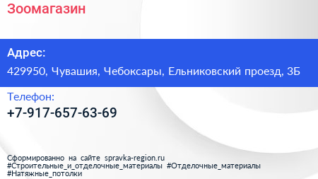 Зоомагазин по адресу 429950, Чувашия, Чебоксары, Ельниковский проезд, 3Б в дальнейшем Организация, размещена в следующих категориях: