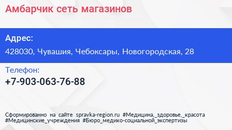 Амбарчик, сеть магазинов по адресу 428030, Чувашия, Чебоксары, Новогородская, 28 в дальнейшем Организация, размещена в следующих категориях: