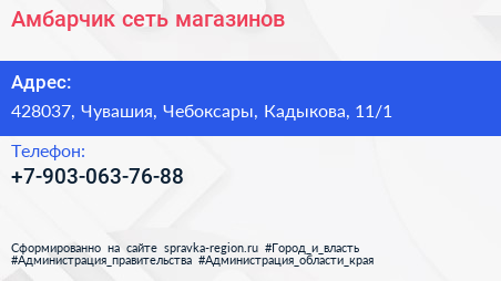 Амбарчик, сеть магазинов по адресу 428037, Чувашия, Чебоксары, Кадыкова, 11/1 в дальнейшем Организация, размещена в следующих категориях: