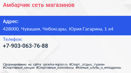 Амбарчик, сеть магазинов по адресу 428000, Чувашия, Чебоксары, Юрия Гагарина, 1 к4 в дальнейшем Организация, размещена в следующих категориях: