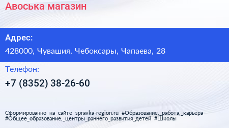 Авоська, магазин по адресу 428000, Чувашия, Чебоксары, Чапаева, 28 в дальнейшем Организация, размещена в следующих категориях: