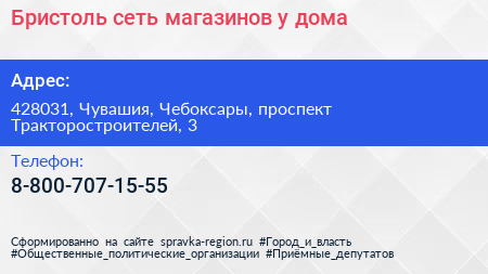 Бристоль, сеть магазинов у дома по адресу 428031, Чувашия, Чебоксары, проспект Тракторостроителей, 3 в дальнейшем Организация, размещена в следующих категориях: