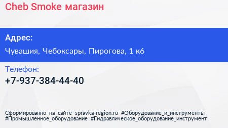 Cheb Smoke, магазин по адресу Чувашия, Чебоксары, Пирогова, 1 к6 в дальнейшем Организация, размещена в следующих категориях: