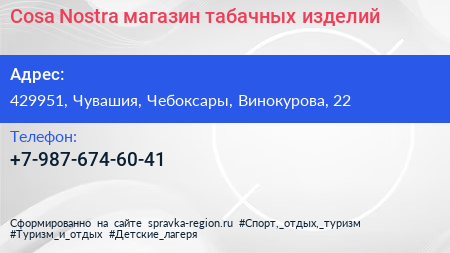 Cosa Nostra, магазин табачных изделий по адресу 429951, Чувашия, Чебоксары, Винокурова, 22 в дальнейшем Организация, размещена в следующих категориях: