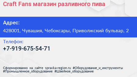 Craft Fans, магазин разливного пива по адресу 428001, Чувашия, Чебоксары, Приволжский бульвар, 2 в дальнейшем Организация, размещена в следующих категориях: