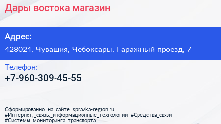 Дары востока, магазин по адресу 428024, Чувашия, Чебоксары, Гаражный проезд, 7 в дальнейшем Организация, размещена в следующих категориях: