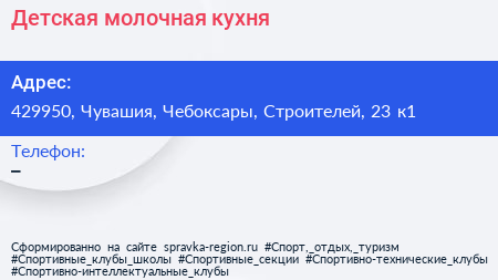 Детская молочная кухня по адресу 429950, Чувашия, Чебоксары, Строителей, 23 к1 в дальнейшем Организация, размещена в следующих категориях: