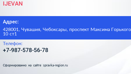 IJEVAN по адресу 428001, Чувашия, Чебоксары, проспект Максима Горького, 10 ст1 в дальнейшем Организация, размещена в следующих категориях: