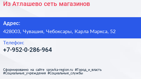 Из Атлашево, сеть магазинов по адресу 428003, Чувашия, Чебоксары, Карла Маркса, 52 в дальнейшем Организация, размещена в следующих категориях: