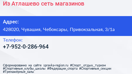 Из Атлашево, сеть магазинов по адресу 428020, Чувашия, Чебоксары, Привокзальная, 3/1а в дальнейшем Организация, размещена в следующих категориях: