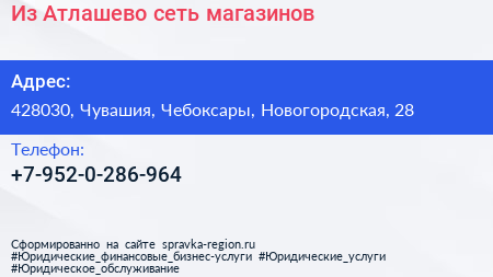 Из Атлашево, сеть магазинов по адресу 428030, Чувашия, Чебоксары, Новогородская, 28 в дальнейшем Организация, размещена в следующих категориях: