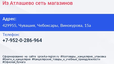 Из Атлашево, сеть магазинов по адресу 429955, Чувашия, Чебоксары, Винокурова, 15а в дальнейшем Организация, размещена в следующих категориях:
