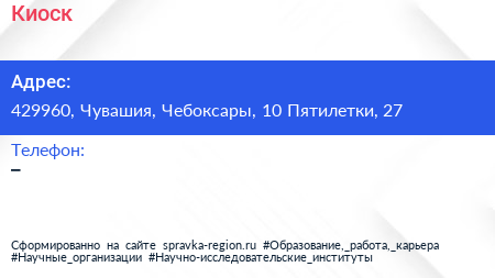 Киоск по адресу 429960, Чувашия, Чебоксары, 10 Пятилетки, 27 в дальнейшем Организация, размещена в следующих категориях: