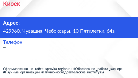 Киоск по адресу 429960, Чувашия, Чебоксары, 10 Пятилетки, 64а в дальнейшем Организация, размещена в следующих категориях: