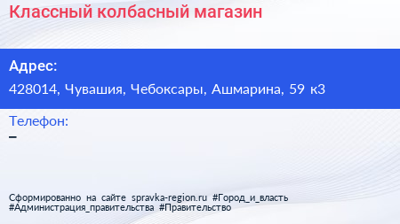 Классный колбасный, магазин по адресу 428014, Чувашия, Чебоксары, Ашмарина, 59 к3 в дальнейшем Организация, размещена в следующих категориях: