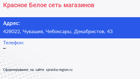 Красное & Белое, сеть магазинов по адресу 428022, Чувашия, Чебоксары, Декабристов, 43 в дальнейшем Организация, размещена в следующих категориях: