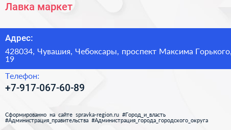 Лавка маркет по адресу 428034, Чувашия, Чебоксары, проспект Максима Горького, 19 в дальнейшем Организация, размещена в следующих категориях: