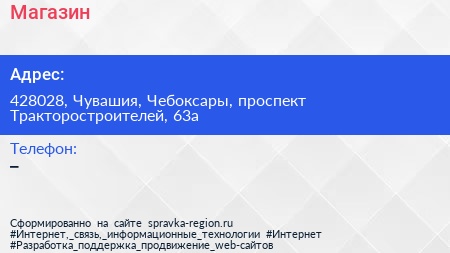 Магазин по адресу 428028, Чувашия, Чебоксары, проспект Тракторостроителей, 63а в дальнейшем Организация, размещена в следующих категориях: