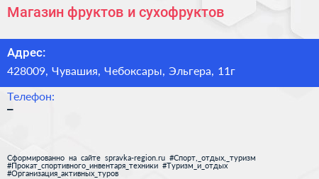 Магазин фруктов и сухофруктов по адресу 428009, Чувашия, Чебоксары, Эльгера, 11г в дальнейшем Организация, размещена в следующих категориях: