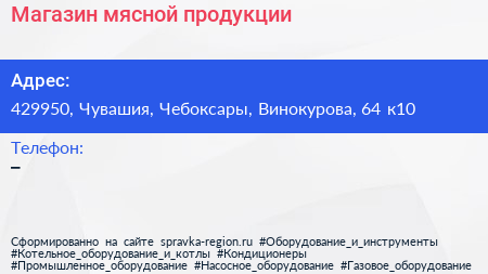 Магазин мясной продукции по адресу 429950, Чувашия, Чебоксары, Винокурова, 64 к10 в дальнейшем Организация, размещена в следующих категориях: