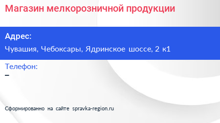 Магазин мелкорозничной продукции по адресу Чувашия, Чебоксары, Ядринское шоссе, 2 к1 в дальнейшем Организация, размещена в следующих категориях: