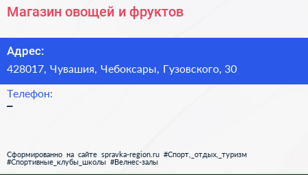 Магазин овощей и фруктов по адресу 428017, Чувашия, Чебоксары, Гузовского, 30 в дальнейшем Организация, размещена в следующих категориях:
