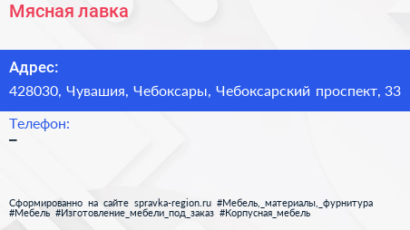 Мясная лавка по адресу 428030, Чувашия, Чебоксары, Чебоксарский проспект, 33 в дальнейшем Организация, размещена в следующих категориях: