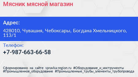 Мясник, мясной магазин по адресу 428010, Чувашия, Чебоксары, Богдана Хмельницкого, 113/1 в дальнейшем Организация, размещена в следующих категориях: