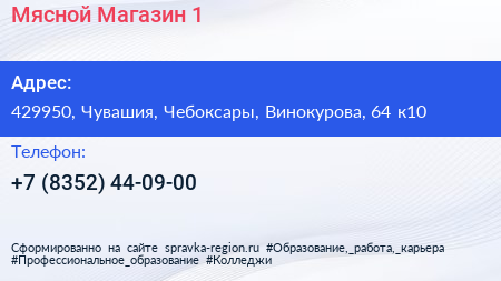 Мясной Магазин №1 по адресу 429950, Чувашия, Чебоксары, Винокурова, 64 к10 в дальнейшем Организация, размещена в следующих категориях: