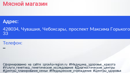 Мясной магазин по адресу 428034, Чувашия, Чебоксары, проспект Максима Горького, 33 в дальнейшем Организация, размещена в следующих категориях: