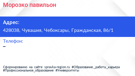 Морозко, павильон по адресу 428038, Чувашия, Чебоксары, Гражданская, 86/1 в дальнейшем Организация, размещена в следующих категориях: