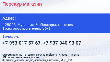 Перекур, магазин по адресу 428028, Чувашия, Чебоксары, проспект Тракторостроителей, 36/1 в дальнейшем Организация, размещена в следующих категориях: