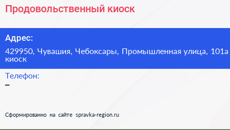 Продовольственный киоск по адресу 429950, Чувашия, Чебоксары, Промышленная улица, 101а киоск в дальнейшем Организация, размещена в следующих категориях: