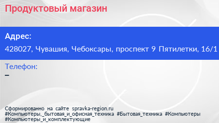 Продуктовый магазин по адресу 428027, Чувашия, Чебоксары, проспект 9 Пятилетки, 16/1 в дальнейшем Организация, размещена в следующих категориях: