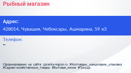Рыбный магазин по адресу 428014, Чувашия, Чебоксары, Ашмарина, 59 к3 в дальнейшем Организация, размещена в следующих категориях: