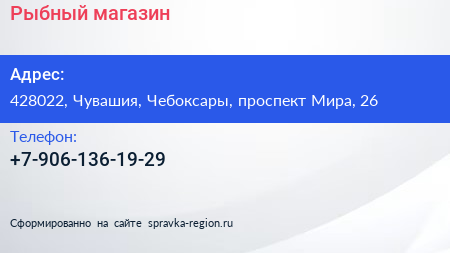 Рыбный магазин по адресу 428022, Чувашия, Чебоксары, проспект Мира, 26 в дальнейшем Организация, размещена в следующих категориях: