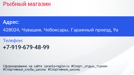 Рыбный магазин по адресу 428024, Чувашия, Чебоксары, Гаражный проезд, 9а в дальнейшем Организация, размещена в следующих категориях: