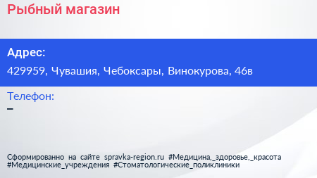 Рыбный магазин по адресу 429959, Чувашия, Чебоксары, Винокурова, 46в в дальнейшем Организация, размещена в следующих категориях: