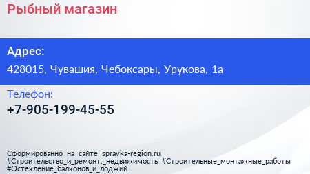 Рыбный магазин по адресу 428015, Чувашия, Чебоксары, Урукова, 1а в дальнейшем Организация, размещена в следующих категориях: