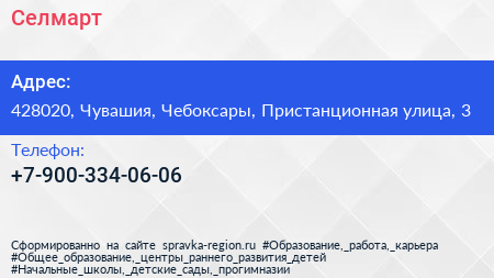 Селмарт по адресу 428020, Чувашия, Чебоксары, Пристанционная улица, 3 в дальнейшем Организация, размещена в следующих категориях: