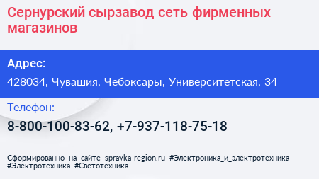 Сернурский сырзавод, сеть фирменных магазинов по адресу 428034, Чувашия, Чебоксары, Университетская, 34 в дальнейшем Организация, размещена в следующих категориях: