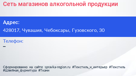 Сеть магазинов алкогольной продукции по адресу 428017, Чувашия, Чебоксары, Гузовского, 30 в дальнейшем Организация, размещена в следующих категориях: